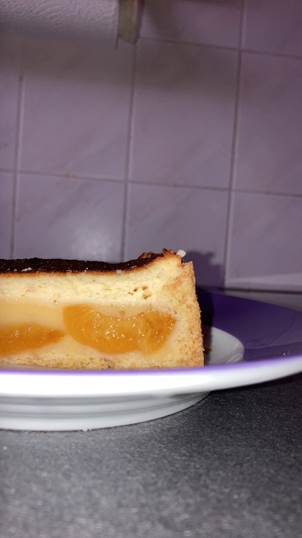 3. Aus dem Puddingpulver und dem Aprikosensaft einen Pudding kochen und noch heiß über die Aprikosen geben.